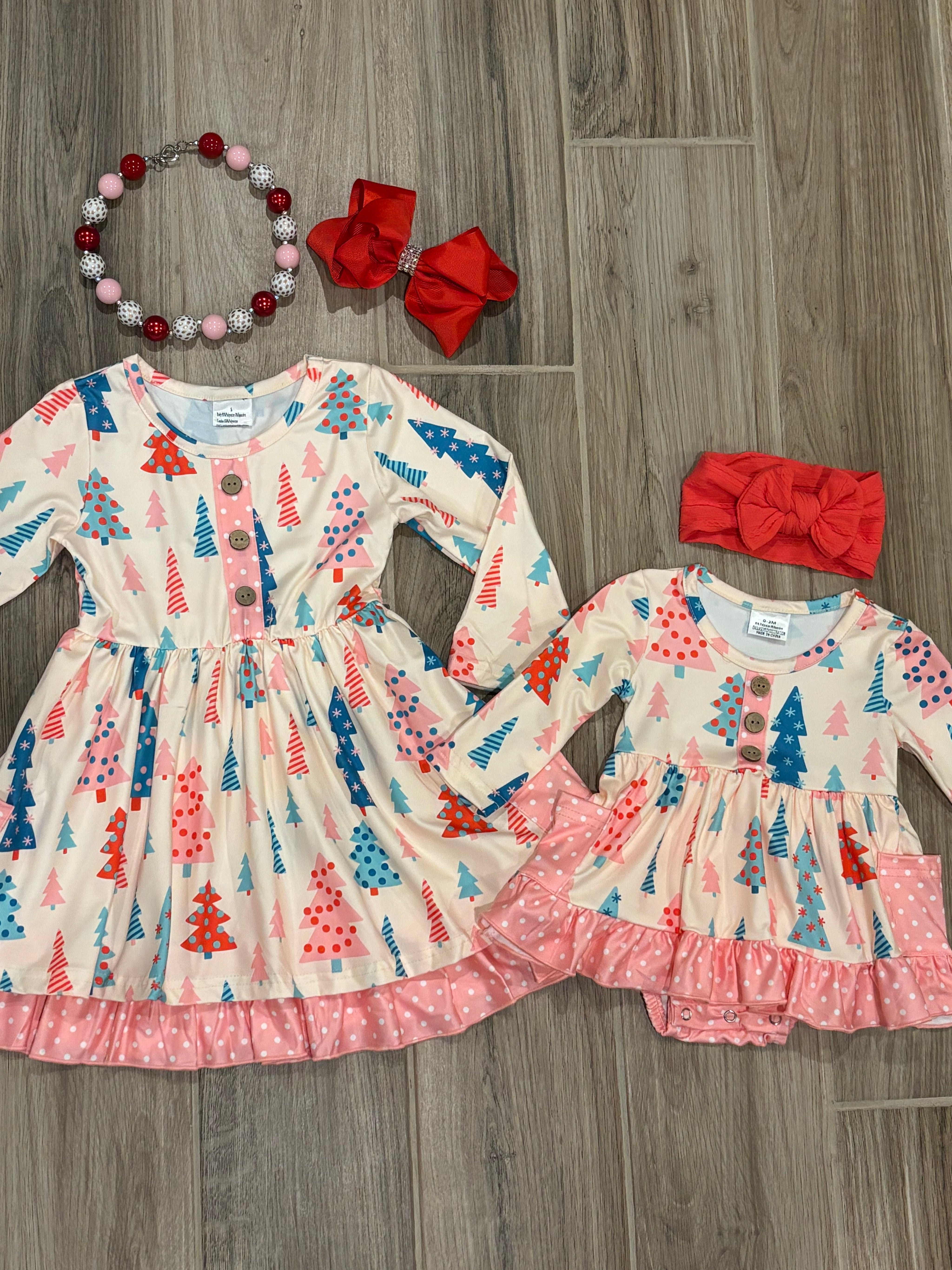 Christmas - Pastel Trees Ruffle Dress